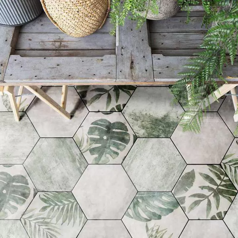 200*230mm Large Porcelain Digital Printed Moroccan Decorative Hexagonal Bathroom Tiles Green For Wall Floor Backsplash Kitchen