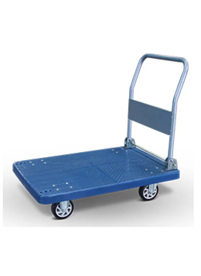 xe đẩy bàn dùng để đẩy hàng trong kho, văn phòng, siêu thị... có mặt bàn bằng nhựa chịu lực