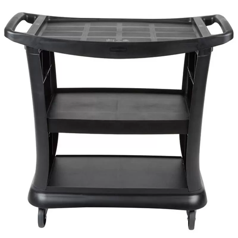 FG9T6800BLA- Xe Đẩy Dịch Vụ 3 Tầng Xe có thiết kế bàn đựng bằng như cứng. Bánh xe êm, di chuyển nhẹ nhàng, không để lại vân trên sàn khi di chuyển Xe được sử dụng trong khu nhà hàng, khách sạn.. THÔNG SỐ KỸ THUẬT Mã hàng Màu sắc Đen Kích thước 30.2 x 20.8 x 15.7 Inch Thương hiệu Rubbermaid Xuất xứ Made in USAShipping/Vận chuyển