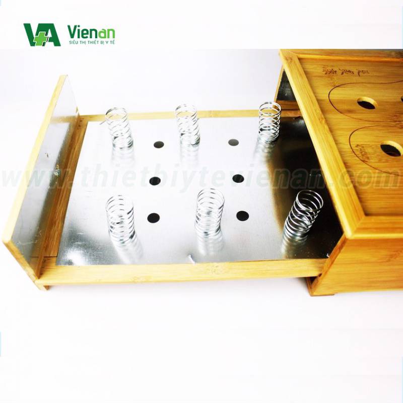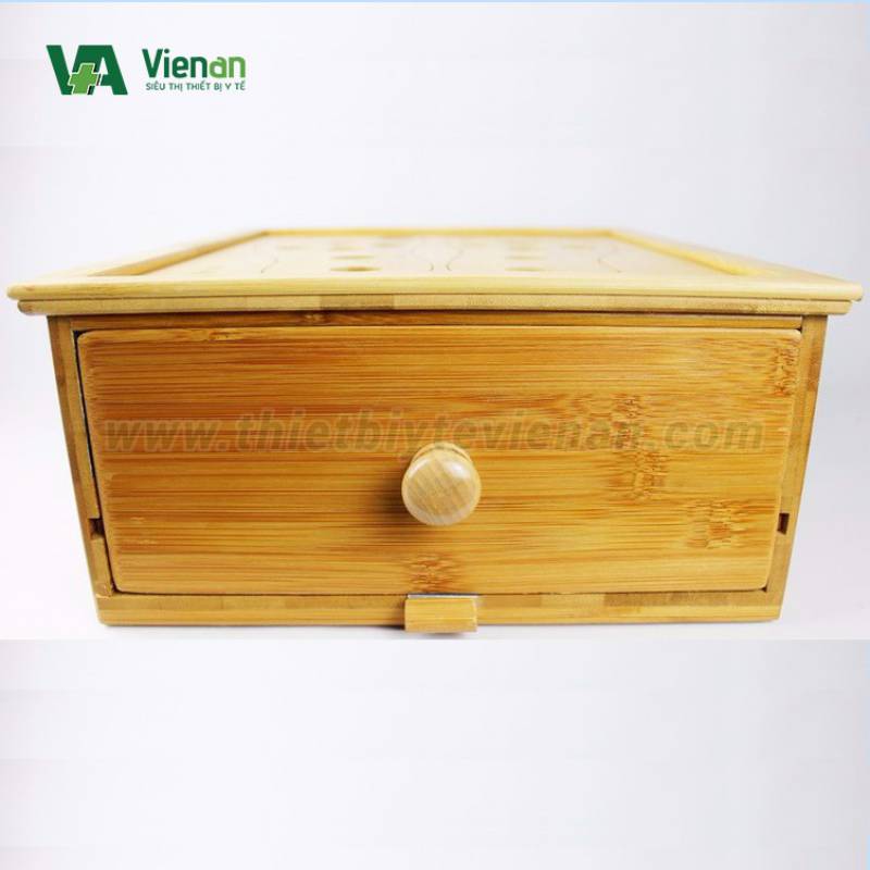 Hộp hình chữ nhật Mặt trên sản phẩm được thiết kế các lỗ nhỏ thông khí tương ứng vị trí huyệt đạo cần tác động trên bàn chân Thiết kế dạng ngăn kéo tiện dụng khi cho hương ngải.