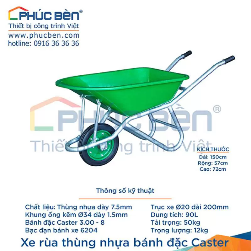 Xe rùa thùng nhựa bánh đặc Caster