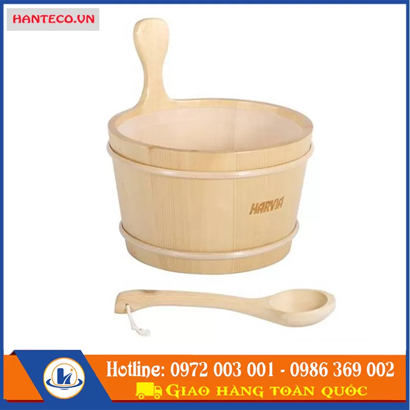 Xô Gáo Gỗ phòng xông Harvia dùng cho phòng xông hơi được làm bằng gỗ thông cùng loại, có tác dụng chứa nước và đổ nước vào máy xông hơi khô.