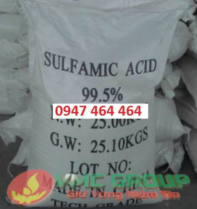 ACID SULFAMIC - H3NSO3 trong ngành công nghiệp tẩy rửa nó làm sạch bề mặt kim loại, loại bỏ rỉ sét. Trong ngành xây dựng nó là một chất tẩy các mảng vữa.Shipping/Vận chuyển
