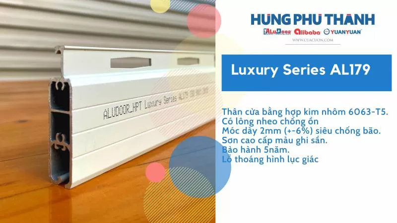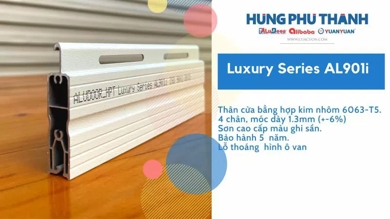 Aludoor Luxury Series - AL901i. Mẫu thiết kế: AL901i. Nan cửa: móc dày 1.2mm. Chất liệu nan: Hợp kim nhôm 6063 - T5. Lỗ thoáng: Hình Oval . Hotline 0908 262279Shipping/Vận chuyển