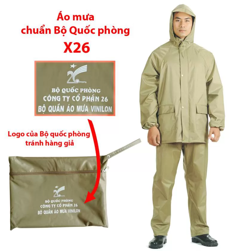 Áo Mưa Bộ Quốc Phòng X26 - Quần Áo Mưa Bộ quân Nhu, Áo mưa Bộ quân nhu X26, quần áo mưa bộ đội X26, Bộ áo mưa quân nhu, Áo Mưa Măng Tô,