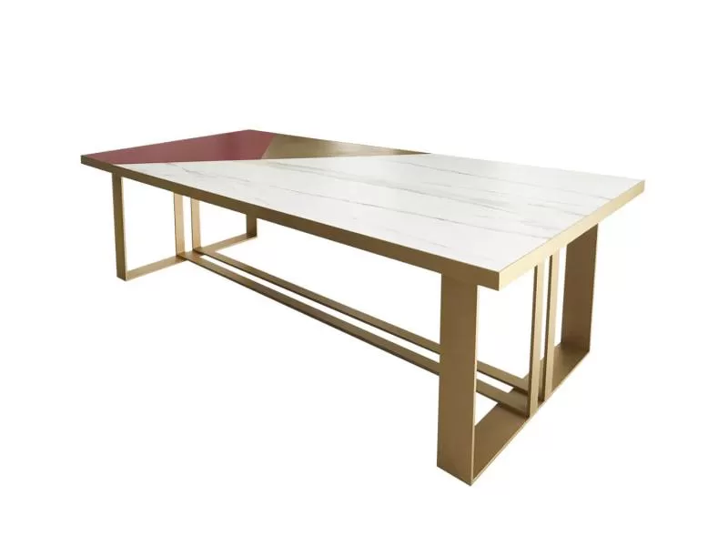 Bàn ăn mặt đá trắng tự nhiên kết hợp cùng chân inox mạ màu vàng bóng gương công nghệ PVD, Kích thước: W 260 x D 120 x H 75 cm. Liên hệ để nhận được báo giá chi tiết nhé.Shipping/Vận chuyển