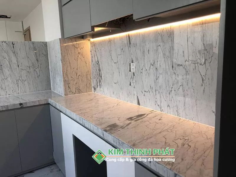 Bàn bếp đá trắng Vân Mây tự nhiên