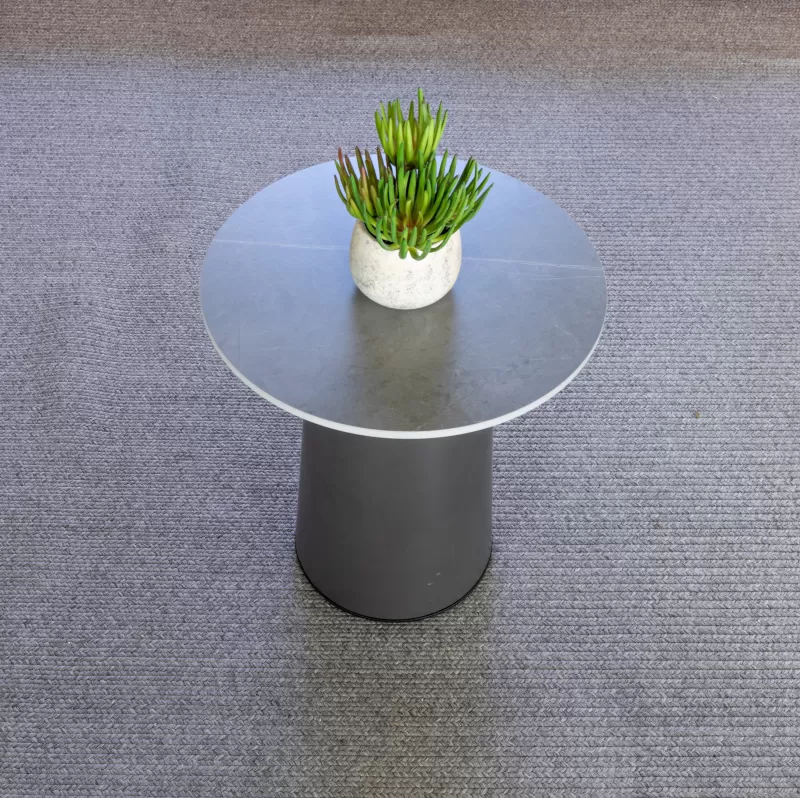 Bàn cafe ceramic tròn sang trọng Mandal B sở hữu thiết kế tối giản, kết hợp mặt bàn tròn cùng chân trụ ống cùng tông màu xám hiện đại Kích thước vừa phải phù hợp không gian phòng khách vừa và lớn Mặt bàn cafe Mandal B làm từ ceramic cao cấp dày 11mm, với 3 màu tùy chọn là xám và xám nhạt Chân bàn được làm bằng gỗ Mẫu t
