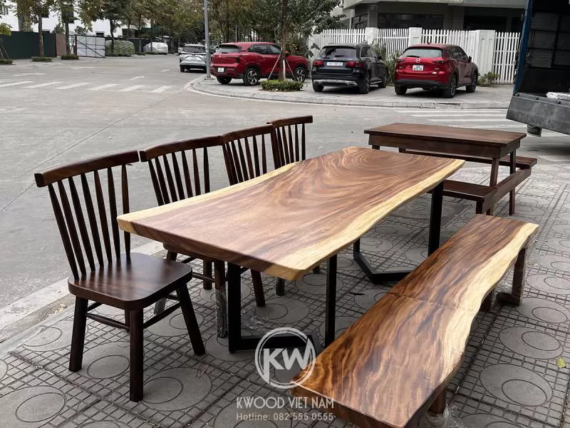 Bàn làm việc gỗ me tây nguyên khối