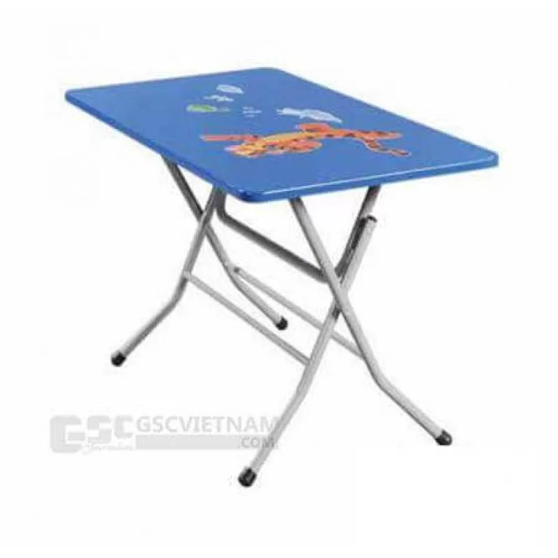 Kích thước: W900 x D450 x H460 (mm) Bàn mẫu giáo có thể gấp gọn lại khi không sử dụng nên rất tiện lợi. Khung thép sơn tĩnh điện. Mặt bàn bằng gỗ sơn PU và bề mặt có dán hình con giống ngộ nghĩnh. Sản phẩm đi kèm với GMG101A-2 để được đồng bộ thành bộ bàn ghế mẫu giáo dành cho trẻ 2-3 tuổi.
