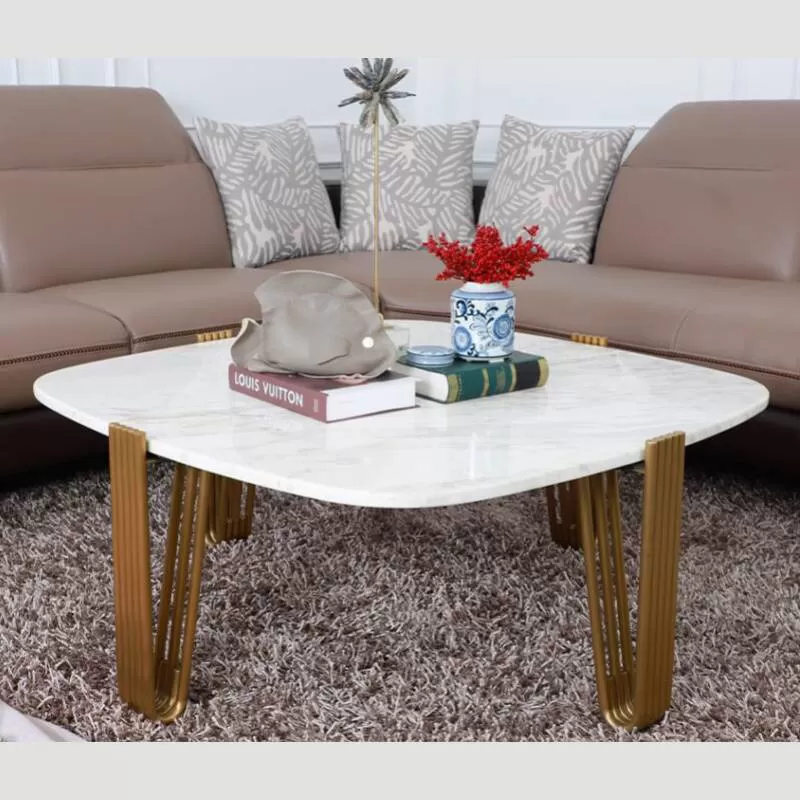 Bàn Sofa Mặt Đá Hình Elip Mặt Đá, Chân Thép Không Gỉ Mạ Vàng Sang Trọn