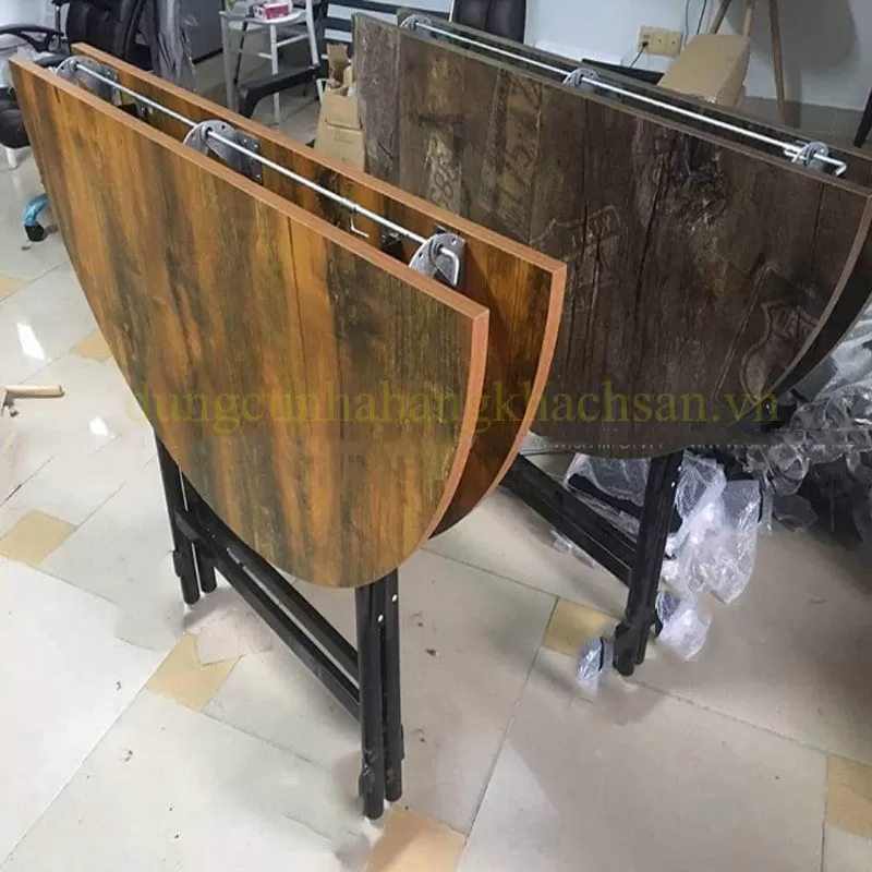 + Kích thước: – Φ1200x(H)760mm – Φ1400x(H)760mm – Φ1600x(H)760mm – Φ1800x(H)760mm + Chất liệu: Sắt sơn, gỗ + Bàn gỗ MDF, độ dày 18mm, + Chân gấp được với ống thép 30x30x1.2mm + Bàn gấp đôi có bánh xe tiếp xúc mặt đất tiện di chuyển + Xuất Xứ: Nhật Minh + Loại Sản phẩm: [...]Shipping/Vận chuyển