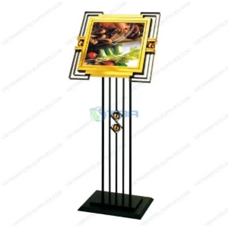 Bảng menu quảng cáo nhà hàng chân đế đen chữ nhật hay còn gọi là bảng menu thông tin di động nhà hàng tiệc cưới, bảng menu thông tin trung tâm hội nghị triển lãm có thiết kế cao cấp sang trọng phù hợp với hầu hết mọi không gian sử dụng thường đặt ở tiền sảnh, quầy lễ tân hoặc quầy dịch vụ khách hàngShipping/Vận chuyển