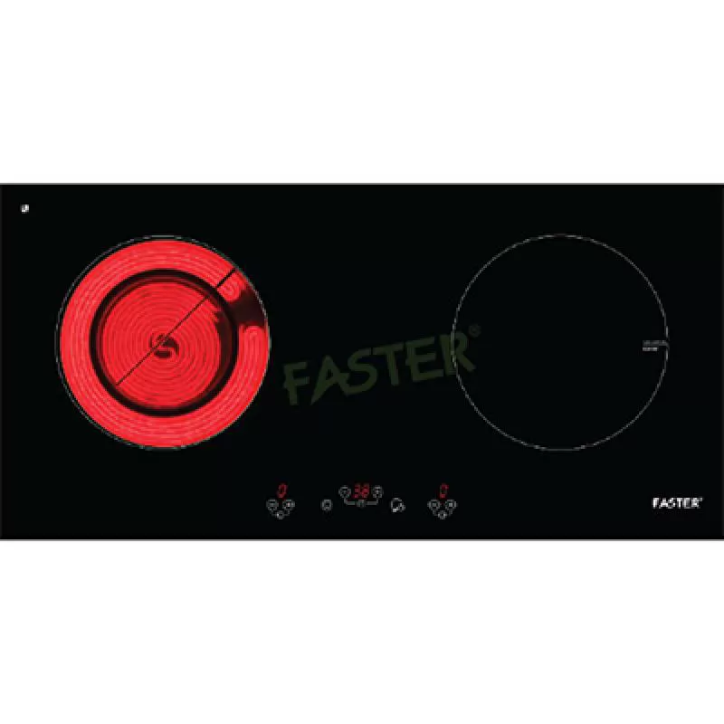 Bếp điện từ Faster FS-740TE Công suất: 3900W( trái 800-1900w, phải 1500-booster 2000W) Điện năng sử dung: 220/240V-50Hz Kích thước mặt kính: 710 x 400 mm kích thước