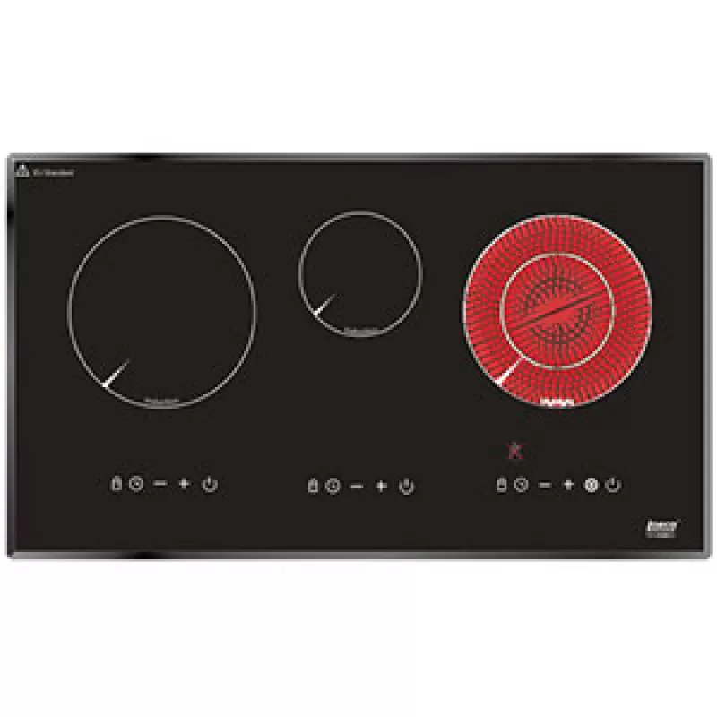 Bếp hai từ một hồng ngoại. Kích thước mặt bếp: 760x460mm. Kích thước khoét đá: 730x430mm. Mặt kính SCHOTT, bề mặt kính thiết kế vát cạnh sang trọng.