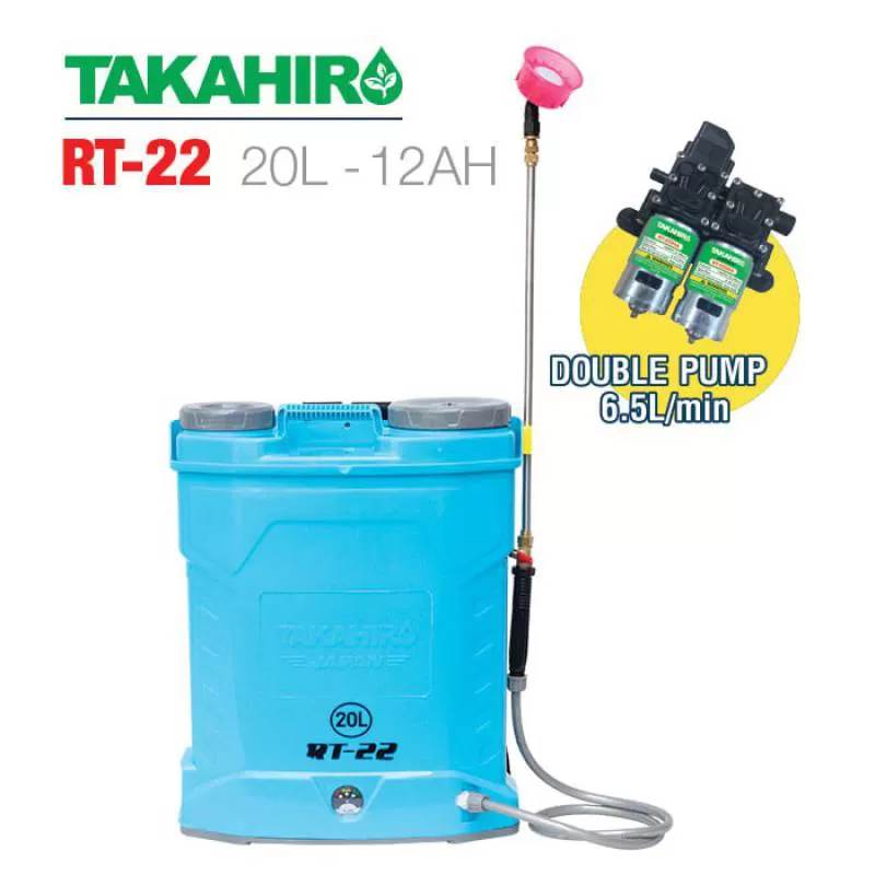 Bình phun thuốc sâu TAKAHIRO RT-22 (20L, 12AH, bơm đôi)