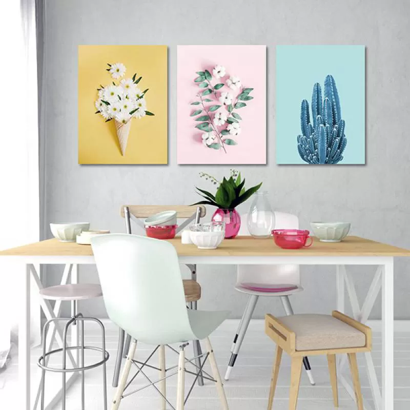 Bộ 3 tranh hoa trắng và cây xương rồng CV0356 là một sản phẩm nghệ thuật độc đáo và tinh tế. Với nền tranh được thiết kế với những gam màu nhẹ nhàng vàng hồng xShipping/Vận chuyển