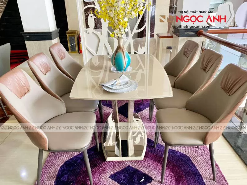Bộ bàn ăn mặt đá 6 ghế Alva Loft trám, tiếp tục khẳng định cơn sốt