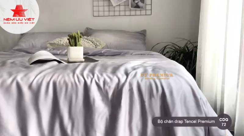 Bộ chăn drap vải Tencel Premium CDG72của Nệm Ưu Việt sử dụng chất liệu vải Tencel cao cấp nhất của loại vải này, đảm bảo chất lượng và vô cùng sang trọng.