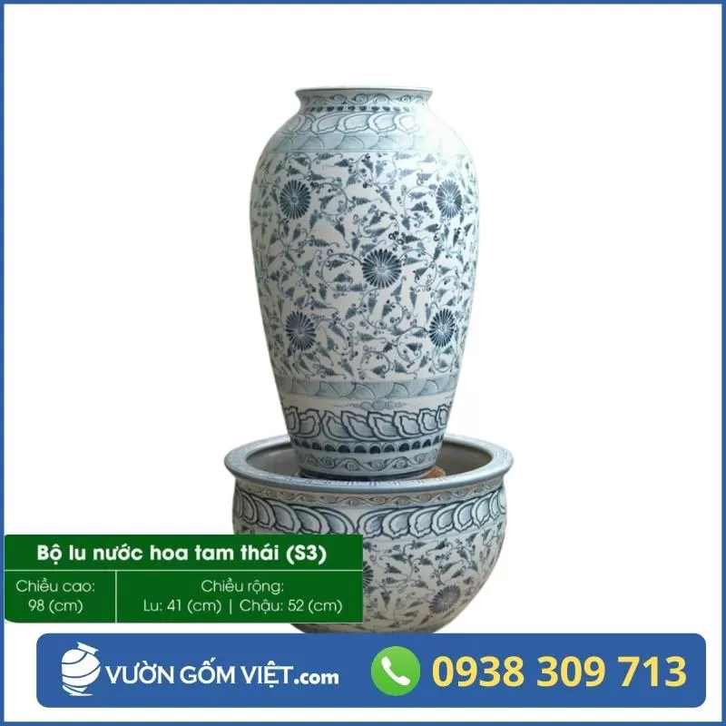 Bộ Chậu Lu Nước Phong Thủy - Đài Phun Nước Gốm Sứ Sân Vườn 05