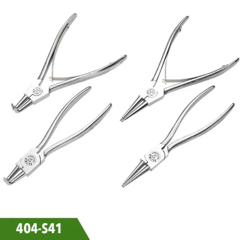 Bộ kìm mở phe 4 món 404-S41 Elora Germany, 19-60mm. Mở phe trong và ngoài, đầu cong 90 độ và đầu thẳng. Vật liệu Chrome Vanadium. LH 096 9276 080.