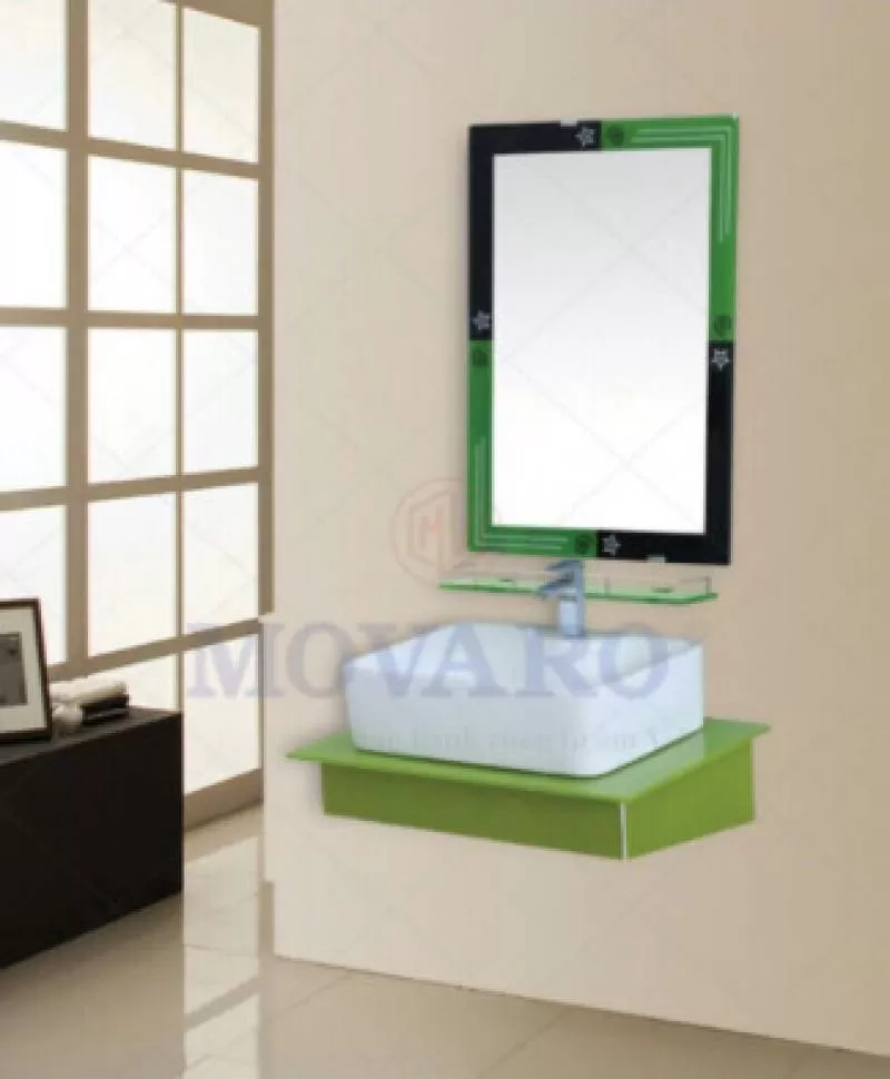 Bộ Lavabo sứ mặt kiếng cường lực (Xanh) - KIENG03