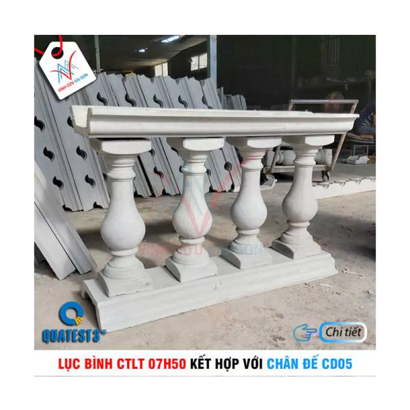 Bộ lục bình CTLT 07H50 và chân đế CD05 làm lan can, hàng rào, được sản xuất và phân phối bởi Vĩnh Cửu Sài Gòn với giá tốt và chất lượng. Liên hệ: 0909 177 415 (Mr. Toàn) để biết thêm chi tiết về sản phẩm.