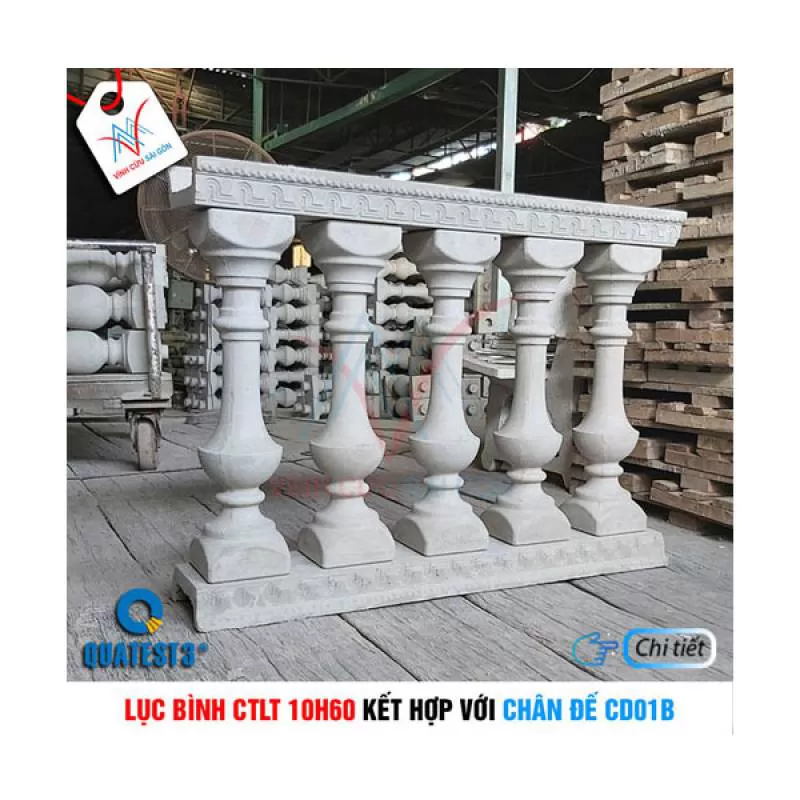 Bộ lục bình CTLT 10H60 và chân đế CD01B làm lan can, hàng rào, được sản xuất và phân phối bởi Vĩnh Cửu Sài Gòn với giá tốt và chất lượng. Liên hệ: 0909 177 415 (Mr. Toàn) để biết thêm chi tiết về sản phẩm.