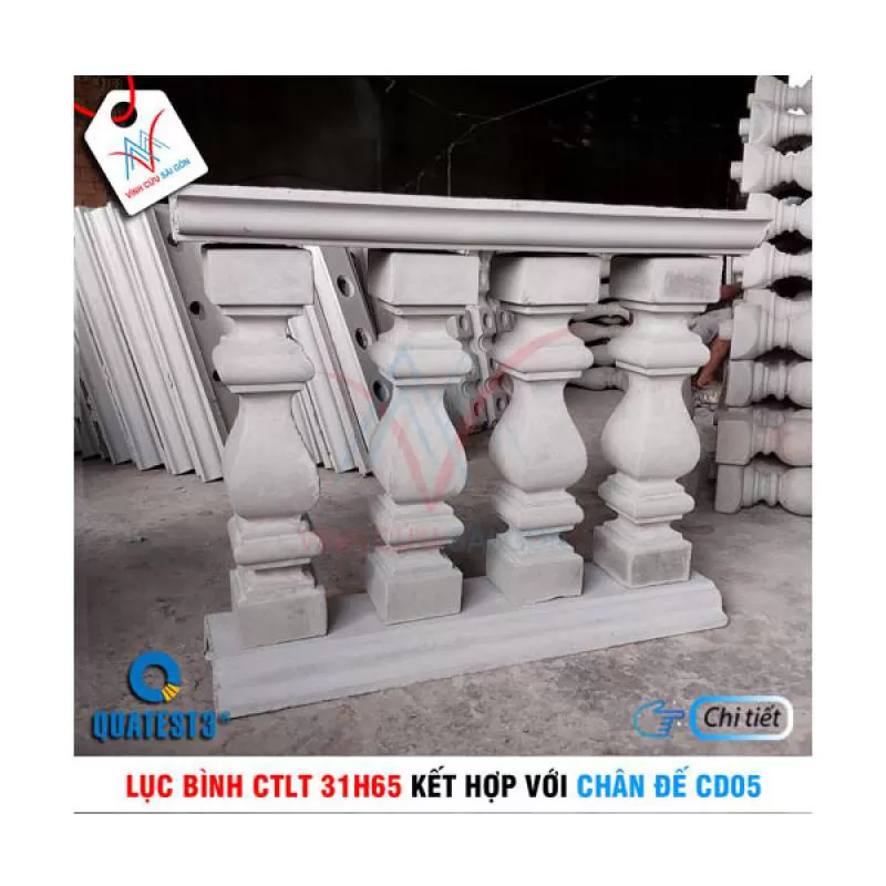 Bộ lục bình CTLT 31H65 và chân đế CD05 làm lan can, hàng rào, được sản xuất và phân phối bởi Vĩnh Cửu Sài Gòn với giá tốt và chất lượng. Liên hệ: 0909 177 415 (Mr. Toàn) để biết thêm chi tiết về sản phẩm.