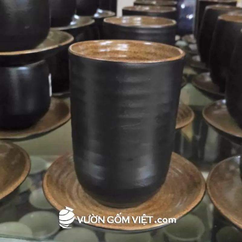Bộ ly gốm sứ cao dáng trụ men nâu đen