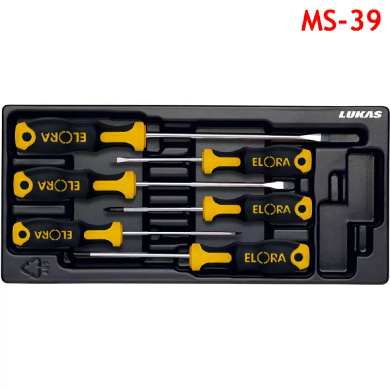 Bộ tô vít 6 món MS-39 Elora Germany. Gồm 04 cây đầu dẹt và 02 cây hoa thị. Đóng gói hộp nhựa 31,5x14,5 cm. Hàng nhập chính hãng. LH 096 9276 080.Shipping/Vận chuyển