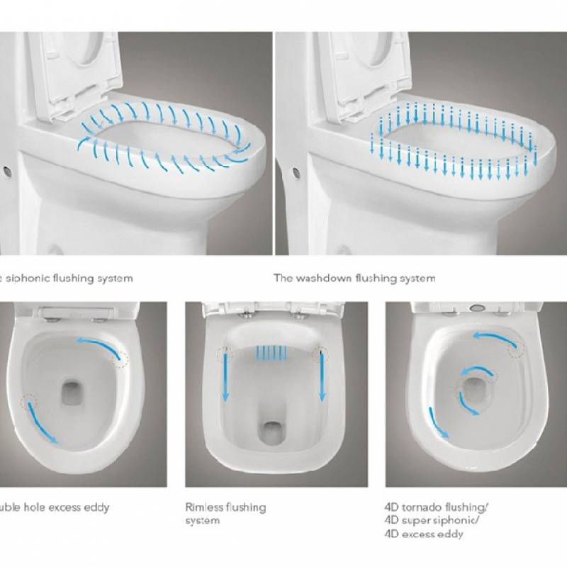 – Hệ thống xả nước xoáy nên không cần hầm cao, ống thông hơi thoáng