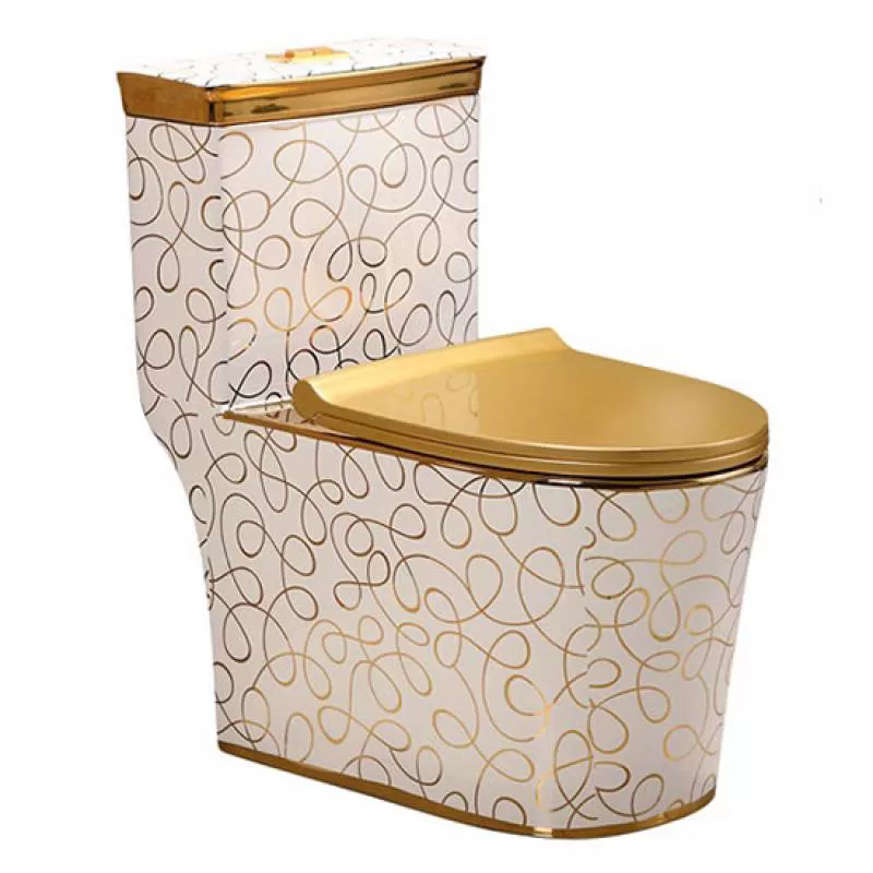 Bồn cầu liền khối Bancoot TS42G mạ vàng Kích thước: 740x420x720 mm Phương pháp xả Siphon Xả Kiểu lắp đặt Gắn sàn Chất liệu gốm sứ Bẫy chữ