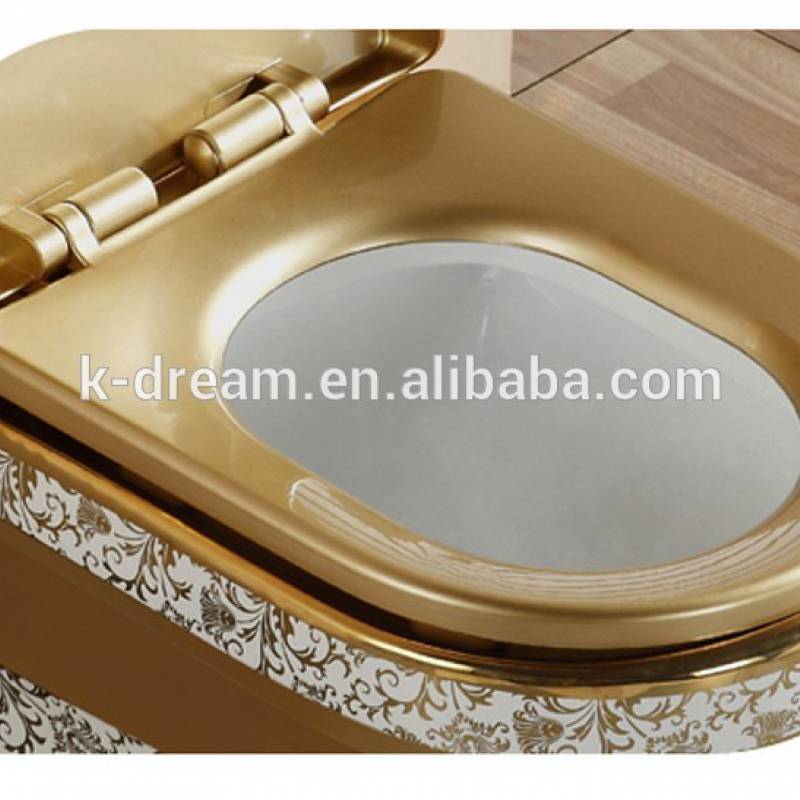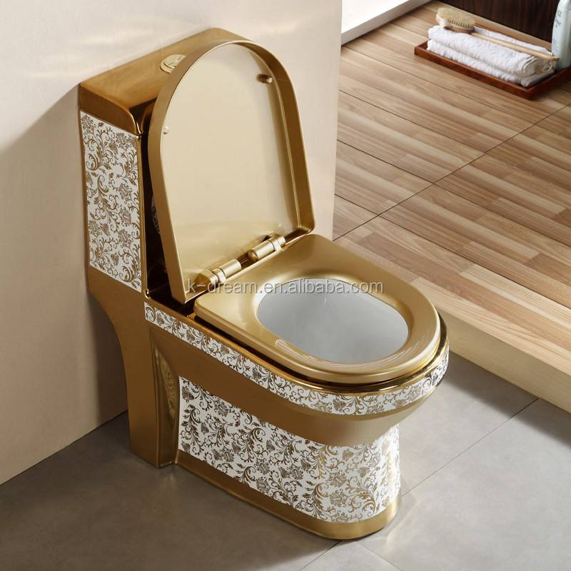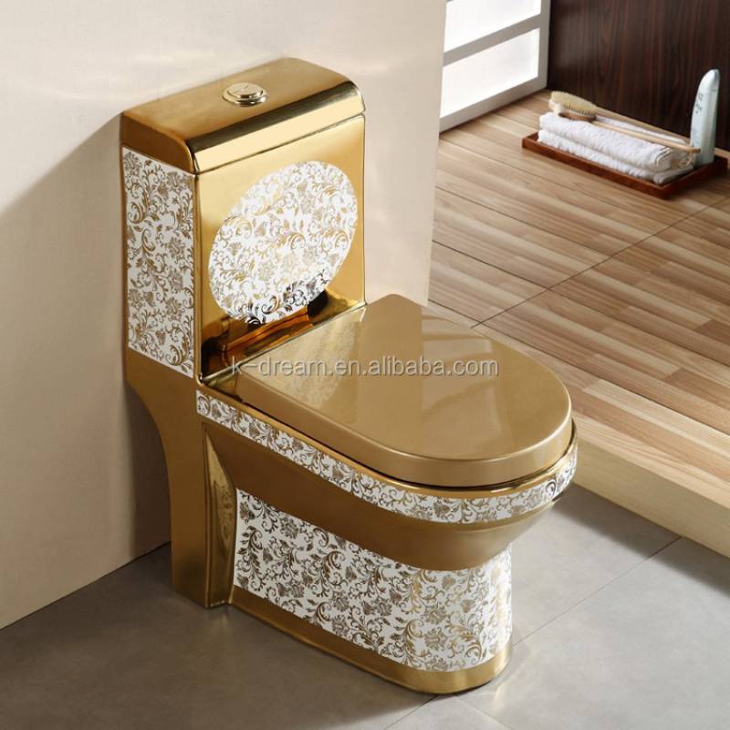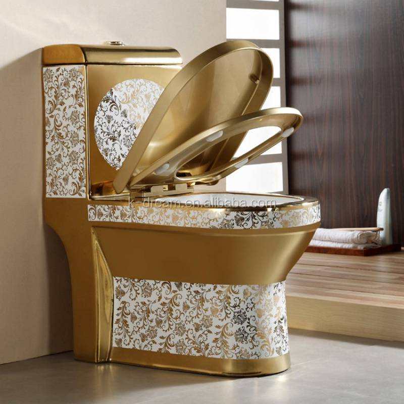 Bồn cầu vệ sinh nguyên khối sứ Siphonic mạ vàng