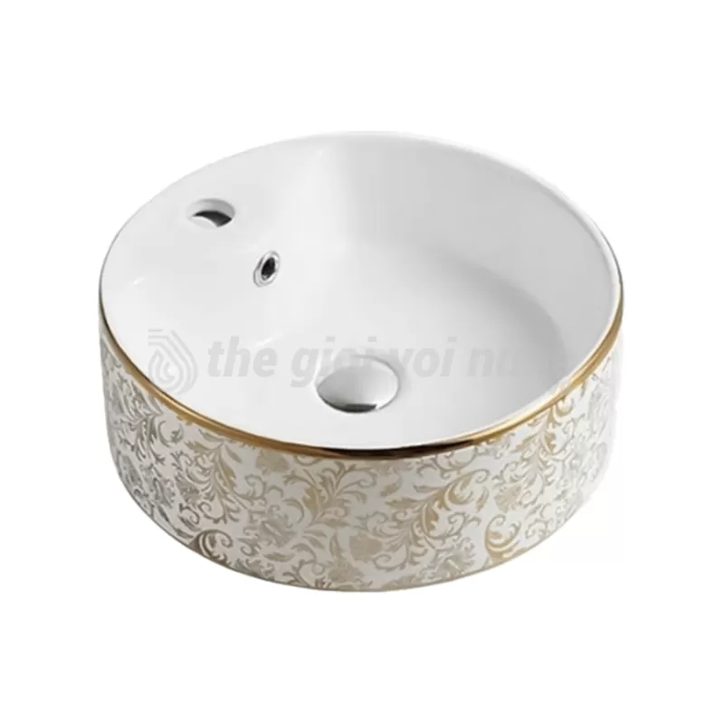 Bồn Lavabo Rửa Mặt Đặt Bàn Sứ Tròn Hoa Văn Cổ Điển Vàng Draco T2182SG