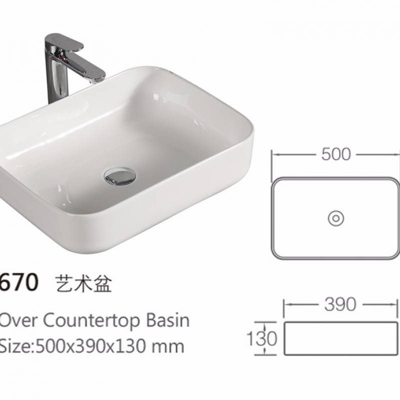 Bồn rửa mặt hình chữ nhật 500*390*130mm 670