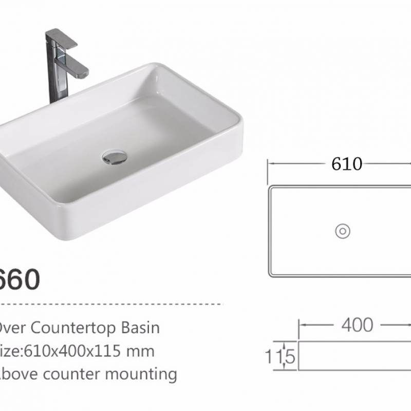 Bồn rửa mặt hình chữ nhật 610*400*115mm 660