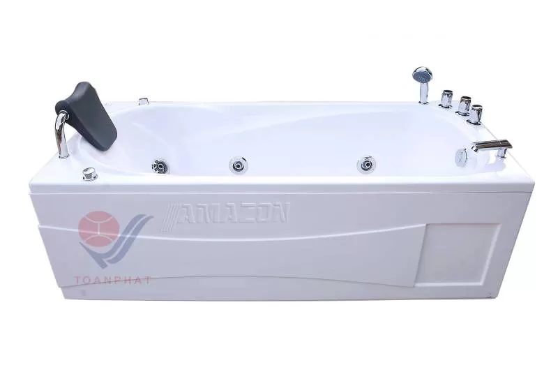 BỒN TẮM MASSAGE AMAZON (TP-8003R) Sau một ngày làm việc căng thẳng và mệt mỏi, mọi người luôn mong muốn được thư giãn, nghỉ ngơi. Khi đắm mình trong các bọt nước ấm của bồn tắm massage AMAZON, cơ thể mệt mỏi sẽ được làm dịu đi bởi sự chăm sóc của nước và cơ thể được truyền thêm sinh lực. Để đáp ứng nhu cầu trên, Công ty Cổ phần Đầu tư SX và XNK Toàn Phát xin giới thiệu sản phẩm Bồn tắm massage AMAZON TP-8003R được thiết kế từ chất liệu Galaxy ngọc trai, siêu bền, sáng bóng tạo nên vẻ đẹp độc đáo cho phòng tắm gia đình bạn. Hãng sản xuất: AMAZON. Loại: Bồn đơn Chất liệu: Ngọc trai (galaxy). Kích thước: 1800 * 810 * 600mm Linh phụ kiện: Yếm phải, 01 gối đầu mềm, xifong xả, hệ thống sục massage, 01 bơm massage AMAZON 750W/1HP, 03 van điều chỉnh, nútShipping/Vận chuyển