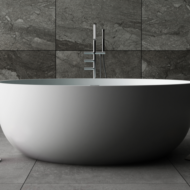 Bồn tắm đá nhân tạo là bồn tắm được chế tác từ đá nhân tạo. Với cấu trúc của đá nhân tạo một trong những dòng đá nhân tạo được đánh giá là chất lượng ưu việt nhất trên thị trường hiện nay. Đá nhân tạo 100% Acrylic, hợp chất này có tính mềm, dẹo, giòn khi gặp nhiệt. Chúng có đặc điểm dễ uốn cong và tạo dáng tốt. Nên chúng thường được chuyên dụng cho các mẫu thiết kế phức tạp, lượn sóng, bẻ cong, xoắn trong các kiến trúc nghệ thuật trang trí.