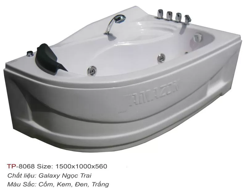 BỒN TẮM JACCUZZI AMAZON (TP-8057) Công ty Cổ phần Đầu tư SX và XNK Toàn Phát xin giới thiệu sản phẩm Bồn tắm thủy lực Jaccuzzi AMAZON (TP-8057). Nước được xả ở trung tâm bồn kèm theo khí sủi liên tục tạo cảm giác thoải mái, dễ chịu, xua tan đi cảm giác mệt mỏi của người sử dụng. Với thiết kế hiện đại hợp thời trang, bồn tắm thủy lực Jaccuzzi AMAZON sẽ đem lại vẻ đẹp sang trọng cho không gian của bạn. Thông tin sản phẩm: Loại: Bồn tập thể 4-6 người. Chất liệu: Ngọc trai (galaxy) Kích thước: 1930 * 1930 * 1000mm Linh phụ kiện: 09 mắt massage, 01 bơm 2HP, 01 bộ gia nhiệt, 01 bình lọc cát. Tính năng: Bồn tắm ngâm, sục nước, sục khí và massage. Màu sắc: Galaxy ngọc trai cốm, kem, đen, trắng. Sử dụng: Nằm, ngồi tùy ý tạo cảm giác thoải mái và luôn vận động. LựaShipping/Vận chuyển