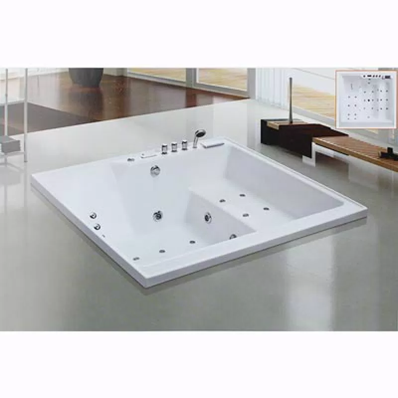 Bồn tắm xây massage Laiwen W-5001 Thông số kỹ thuật Sản phẩm: Bồn tắm massage Model: Laiwen W-5001 Chất liệu : Acrylic Kích thước (RxDxC) : 1800x1700x630 mm