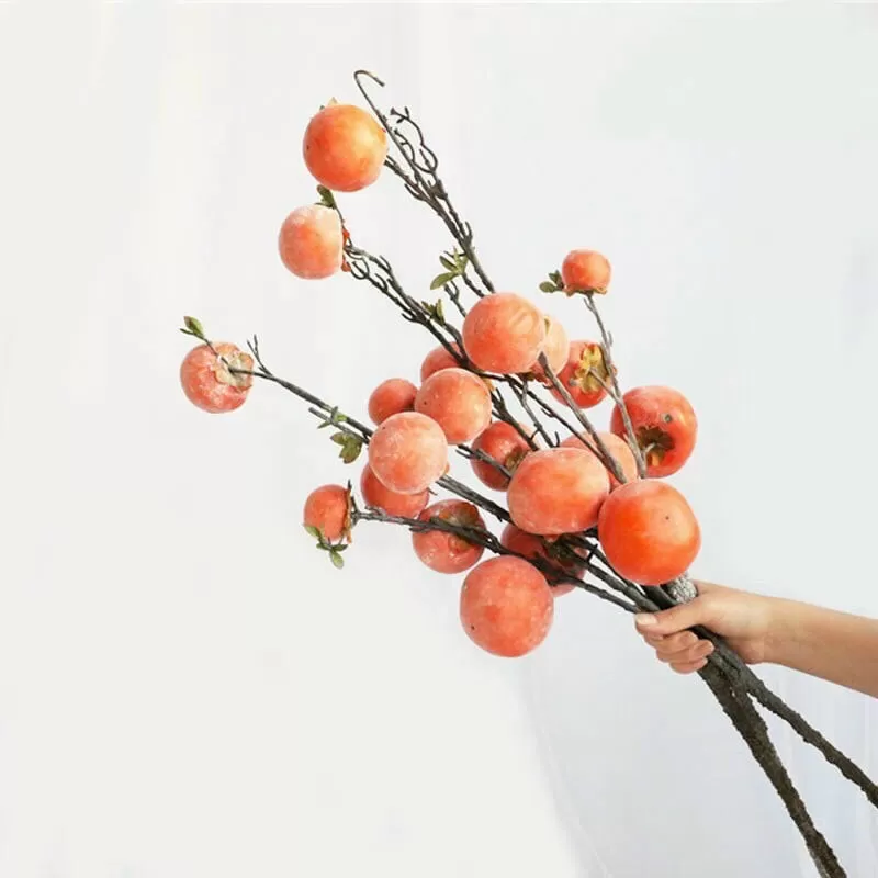 Những năm gầnđây những người yêu thích trang trí nhà cửađón nhận hàng loạt những mẫu cây quả decor mới vàđộcđáo. không cần nhiều hoa lá cành,đôi khi một vài cành lựu hay một vài cành hồng giả cũng có thể làm cho không gian sống của chúng ta trở nên sinhđộng và phá cách.Cành hồngđược làm từ chất liệu nhựa tổng hợp, cuống bằng lõi thép và quả hồngđược làm bằng xốp. Bên ngoài phủ một lớp phấn mốc như trái hồng vẫnở trên cây còn vương sương sớm.
