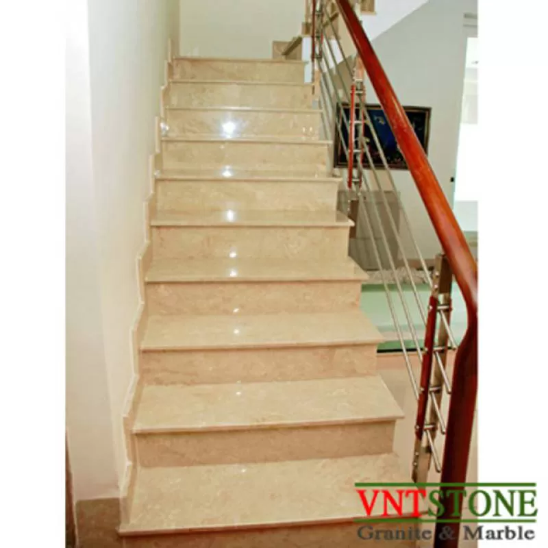 Đá lát cầu thang thường có nhiều màu sắc và hoa văn đẹp dễ kết hợp với lan can được làm từ các inox hay gỗ, tạo nên sự hòa hợp về tính thẩm mỹ và làm nổi bật được sự sang trọng của nó.