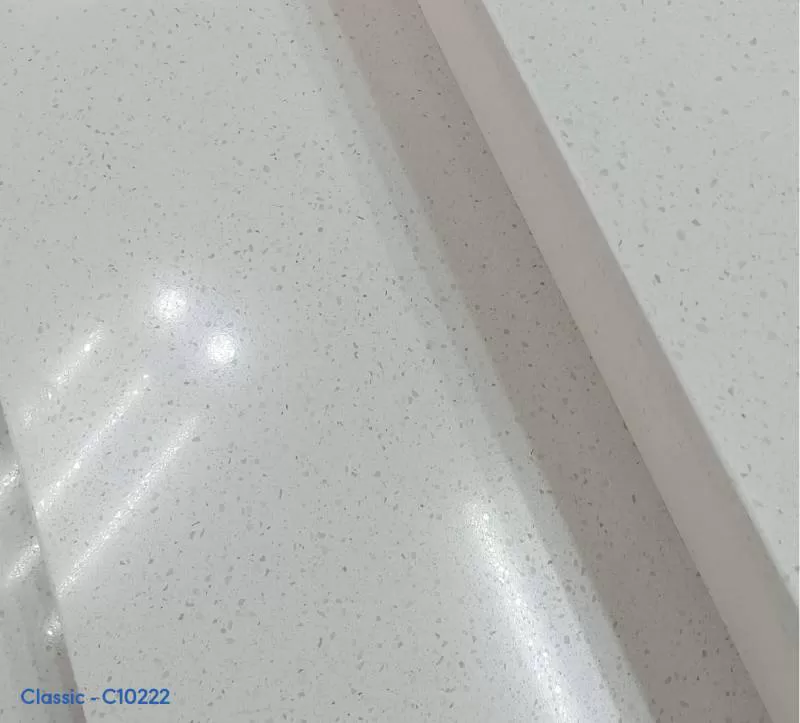 Đá ốp lát phong thủy Thạch anh Trắng Ngọc Trai sở hữu nhiều đặc tính ưu việt và toát ra vẻ sang trọng, đẳng cấp từ bên trong chất đá. Thêm nữa, các mã C10222, C10322 và C10422 thuộc dòng Classic Trắng được thiết kế với đa dạng kích thước hạt thạch anh khác nhau, mang đến sự lôi cuốn kỳ lạ cho công trình cầu thang.