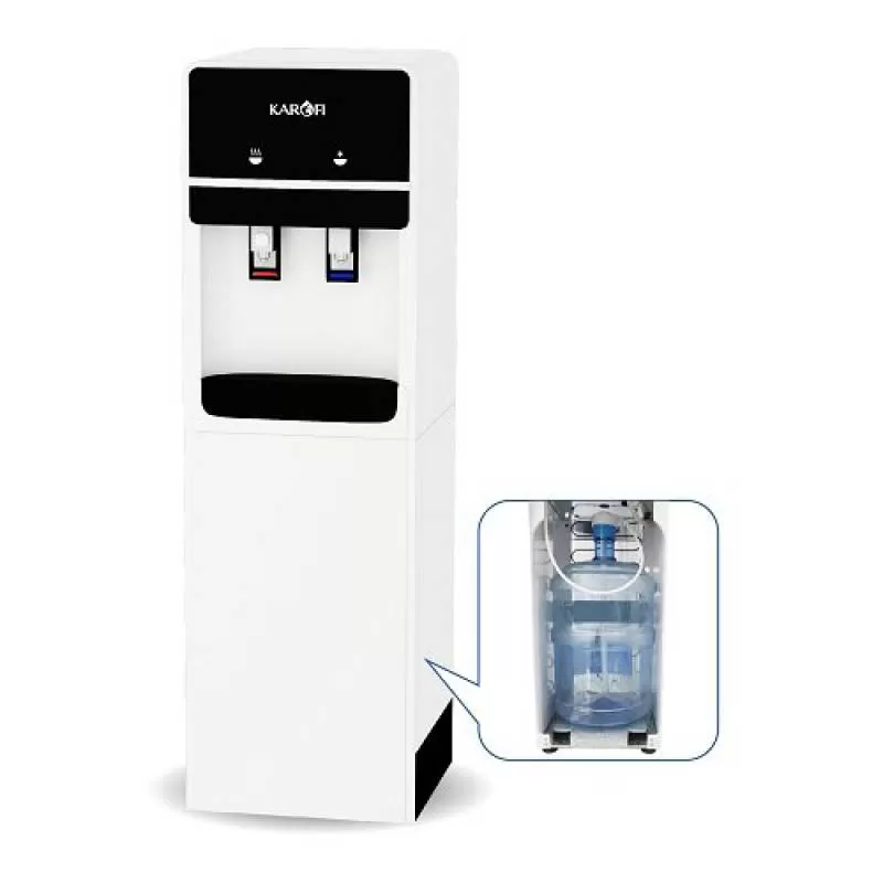 Cây nước nóng lạnh Karofi HC01 an toàn tinh tế, bảo hành chính hãng 2 năm với công nghệ úp bình 20L, làm lạnh bằng Block, BH 3 năm, khóa vòi nóng an toàn với trẻ nhỏ.