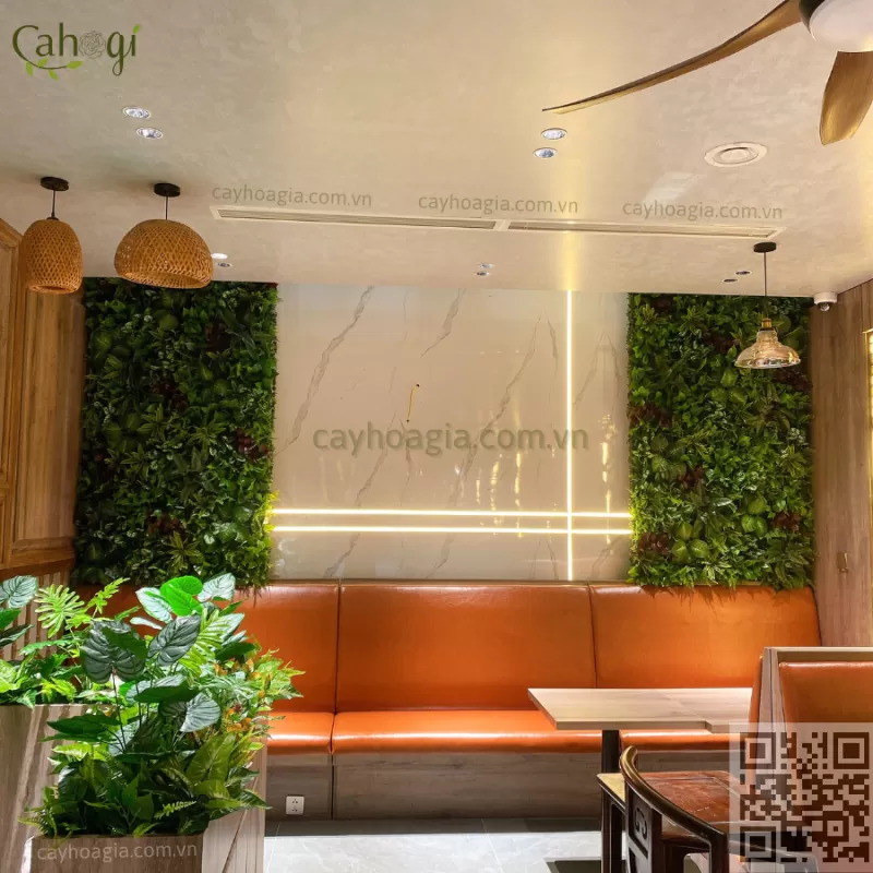 Khi trang trí làm các mảng tường xanh trong nhà. Yếu tố tự nhiên rất quan trọng. Cây giả cây nhựa vừa mô phỏng hoàn hảo vẻ đẹp tự nhiên của cây thật lại có thể tồn tại được trong điều kiện môi trường khắc nghiệt hơn.