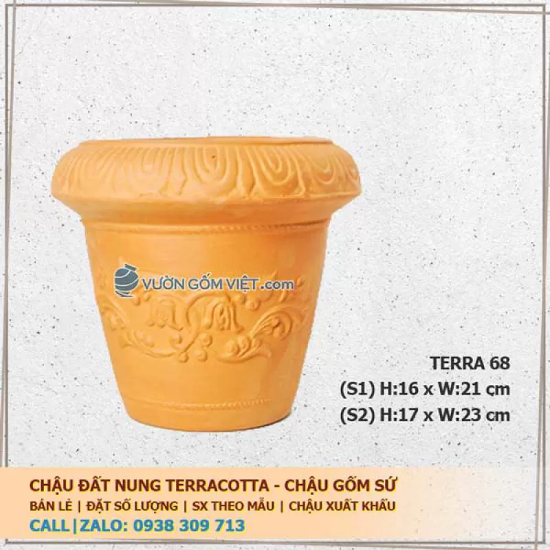 Chậu gốm đất nung hoa văn nổi 68-1