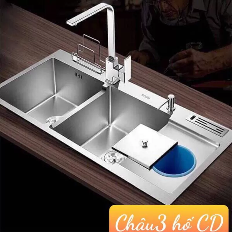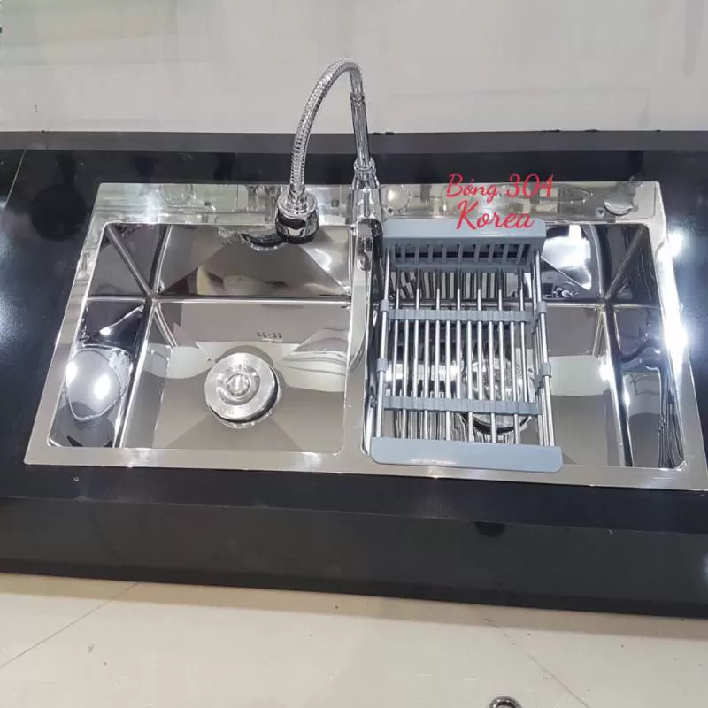 Chậu 1 hố 304 kt 75x45 2 khay - Thiết bị vệ sinh cao cấp chất lượng giá rẻ chỉ có tại Lam Phát