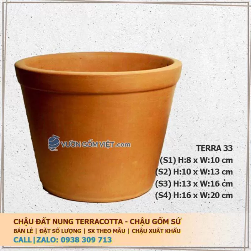 Chậu trồng cây gốm đất nung trụ loe 33-3