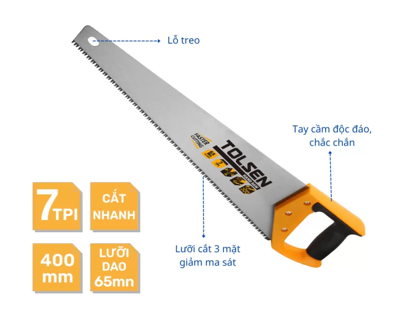- Chất liệu thép Carbon 7TPI cao cấp - Lưỡi cưa 3 mặt cắt giảm ma sát - Tay cầm độc đáo, dễ dàng thao tác - CƯA BẢNG 400mm Shipping/Vận chuyển